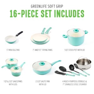 GreenLife Soft Grip Healthy Ceramic Nonstick 16 Piece Kitchen Cookware